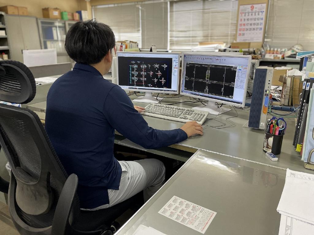 私たちは、役所や商業施設、病院など大型建築物の鉄骨図面制作、製造、建方までを一貫して行う会社です。