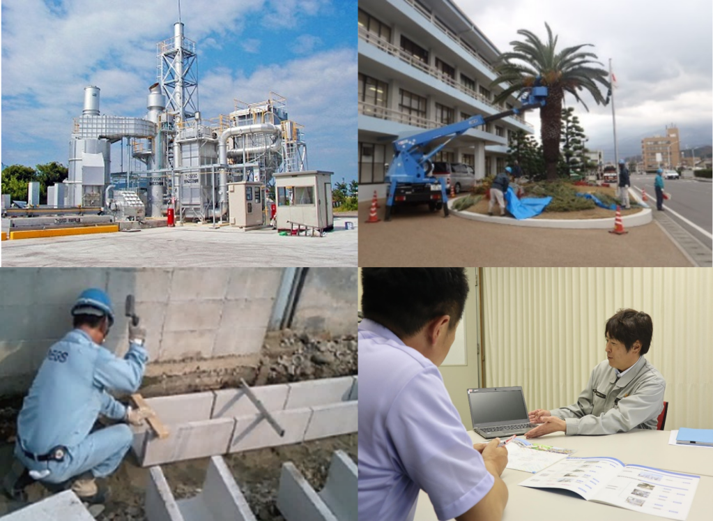 理・リサイクル)②グリーン事業(施設の緑化・補修・衛生管理)③サービス事業(警備防災・分析・教育・システム開発・設備保全)といった3 つの事業を展開しています。地域社会にとっても重要な役割を果たしており「社会が求める幅広いニーズに応える会社」として、未来にやさしい環境づくりに取り組んでいます。大手企業のグループ会社である事業と業績の安定性、そして福利厚生や社内制度が充実したワークライフバランスの取れた環境という背景のもと、思い切って「未来を創る」チャレンジが出来る環境が整っています。今後は環境「想」造事業を推進し、リサイクルや地域課題解決の新規事業も行っていきます。 -