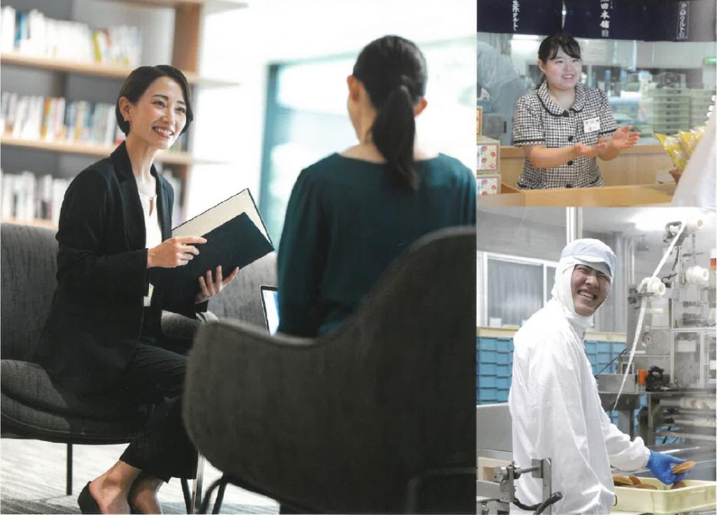 募集職種菓子製造、製造事務、法人営業、店舗販売、販促企画、通販、管理(総務人事、経理、システム)他