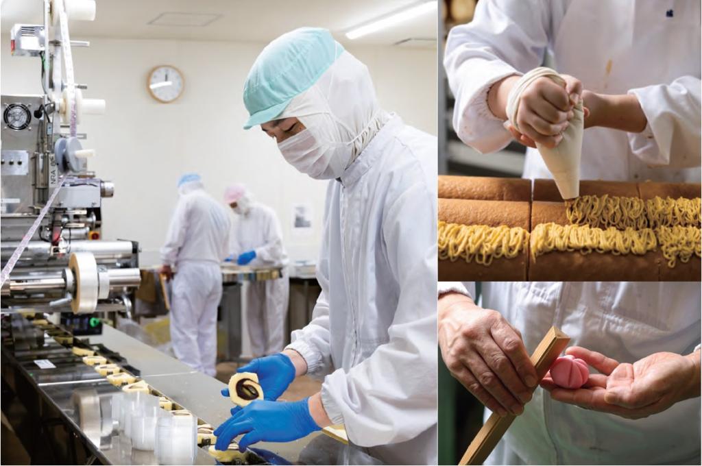 90年以上の歴史で培った経験・技術・アイデアを活かし、安心安全で見た目にも楽しく、何より“おいしいお菓子づくり”を追求。強みである店舗販売の良さも活かしつつ、全国への販路拡大、EC強化にも注力しています。